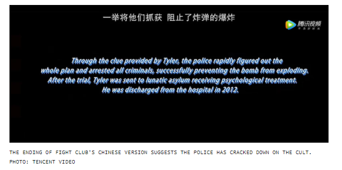 Ben Fritz On Twitter Chyron Added To The End Of Fight Club On The Chinese Streaming Service Tencent Gives The Story A Slightly Different Twist Https T Co Lxo3ci3yht Https T Co R5soalszrq Twitter